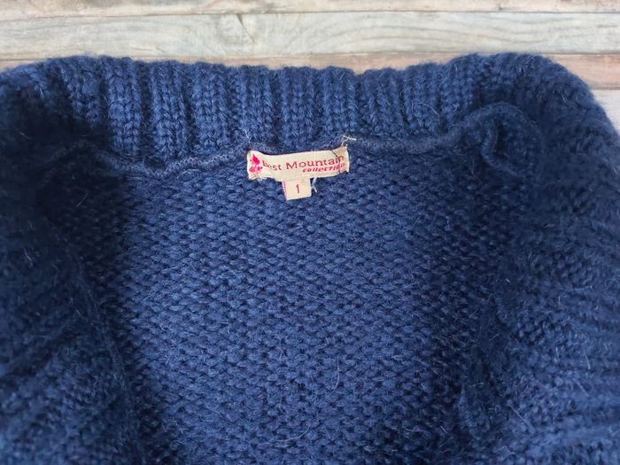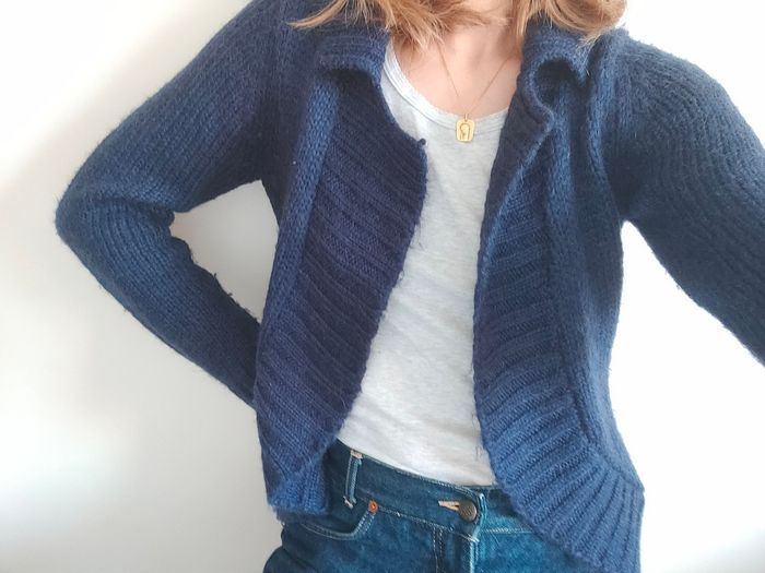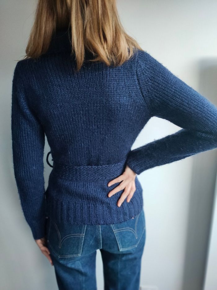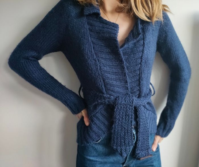 Gilet chaud taille S bleu marine en mohair avec ceinture