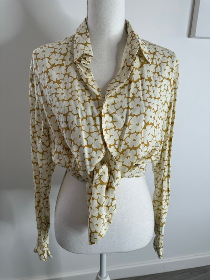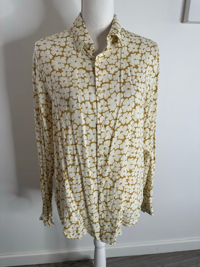 Chemisier à fleurs marron moutarde et blanc Sandro T40 L