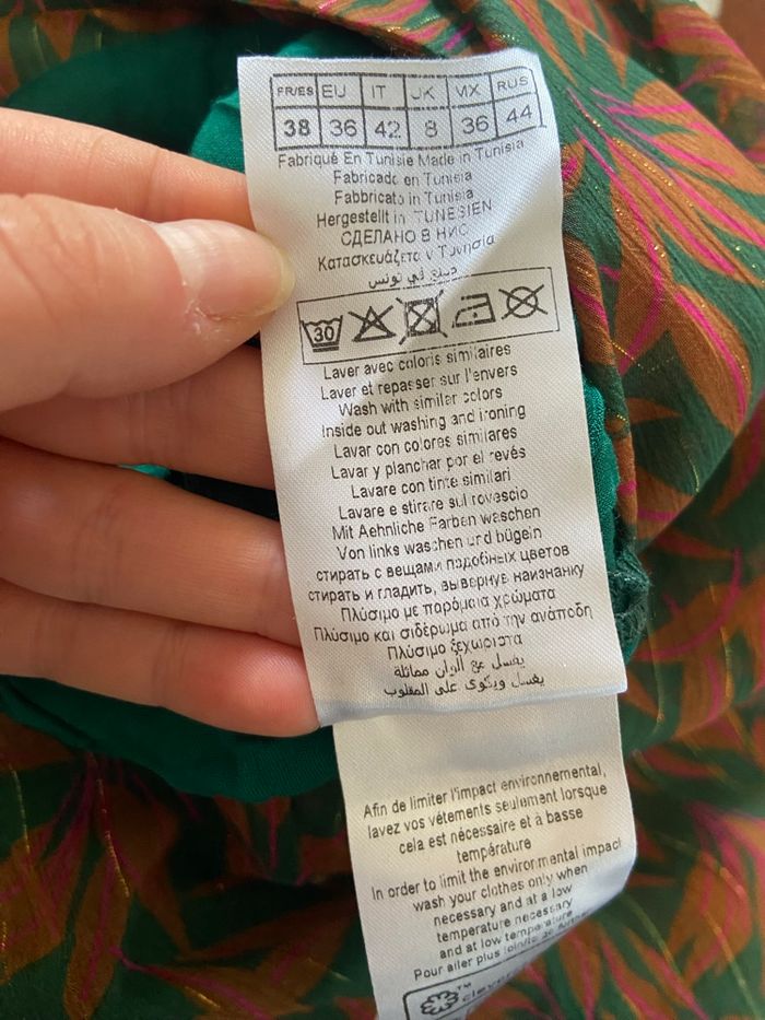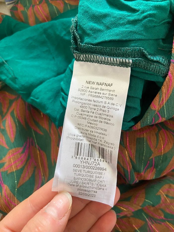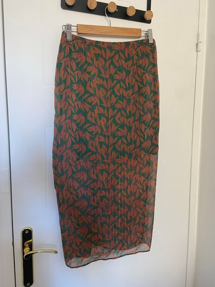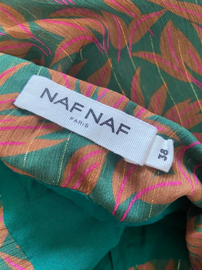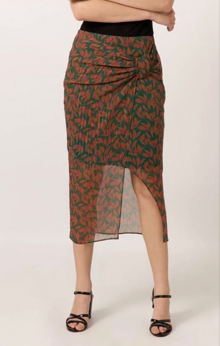 Superbe jupe Naf Naf, style portefeuille, élégante et originale avec ses tons vert et marron.