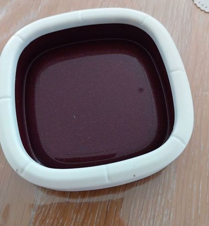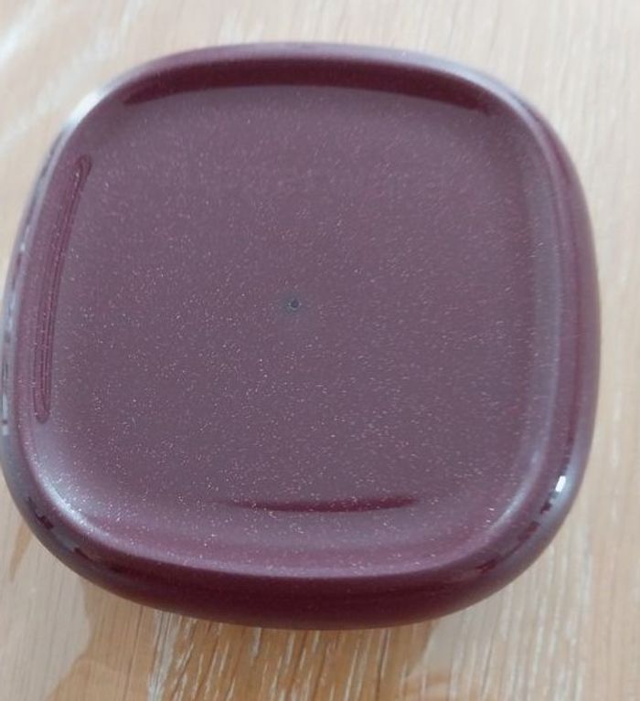 Elle a un couvercle pailleté sur fond bordeaux, qui est doublé d’un joint en silicone pour une adhérence totale à sa base et pour garantir son étanchéité.