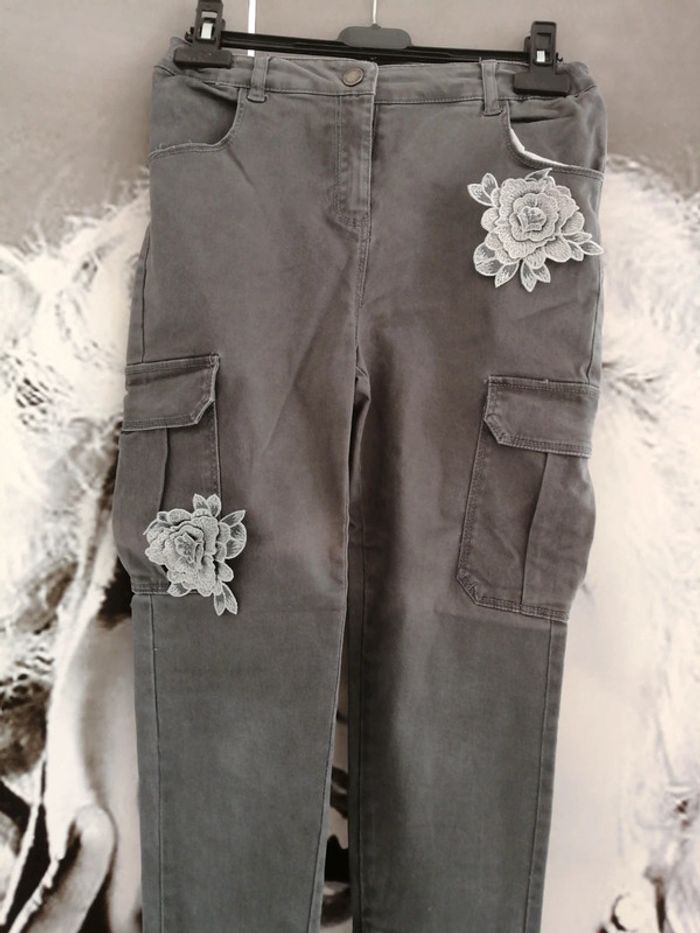 Pantalon verbaudet en parfait état Fermeture par pression et fermeture éclair Taille réglable 2 poches de chaque côtés des jambes 2 fleurs en relief 12 ans (150cm)