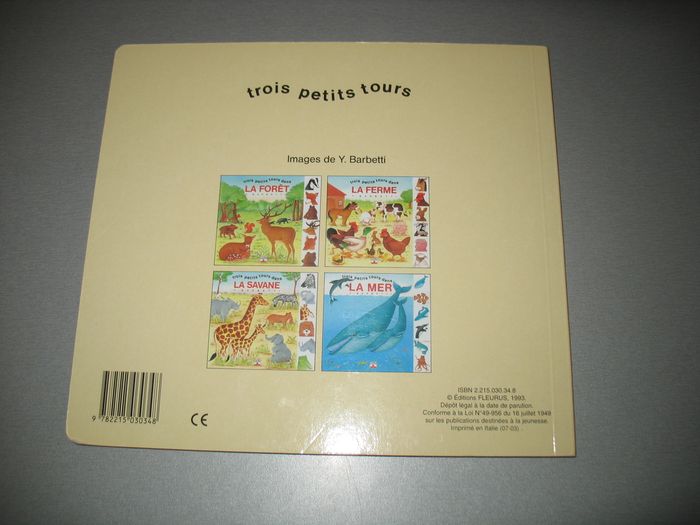 #Livres_Nathg2210 LIVRE : TROIS PETITS TOURS DANS LA FERME "FLEURUS ENFANTS" - n°22 Livre cartonné - Animaux dans la ferme - Auteur : Yvette BARBETTI - ISBN : 2-215-030-34-8. Article en très beau état - Désinfecté pour la vente. Possibilité d'envoyer d'autres photos sur simple demande. Maison non-fumeur - Sans animaux. Réduction lot activée. Allez voir mes autres ventes, je vide les placards. Beaucoup de vêtements de marque et beaucoup de jouets. Remise en mains propres ou possibilité d'envoi au tarif en vigueur à votre charge. Retour Refusé. Pour tout renseignement, n'hésitez pas à me contacter, je répondrai volontiers à vos questions. Réponse Assurée. Pour Consulter mes autres annonces tapez Nathg2210.