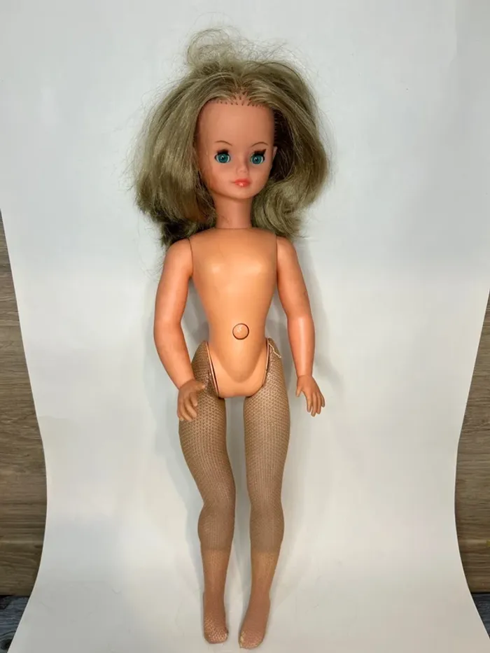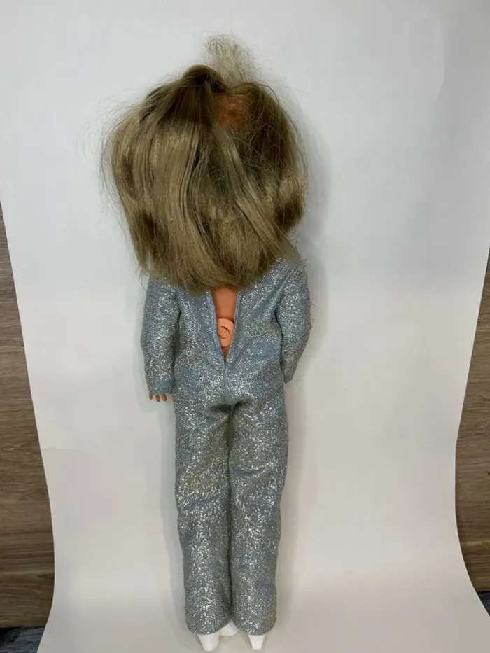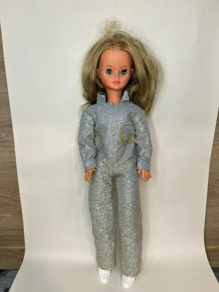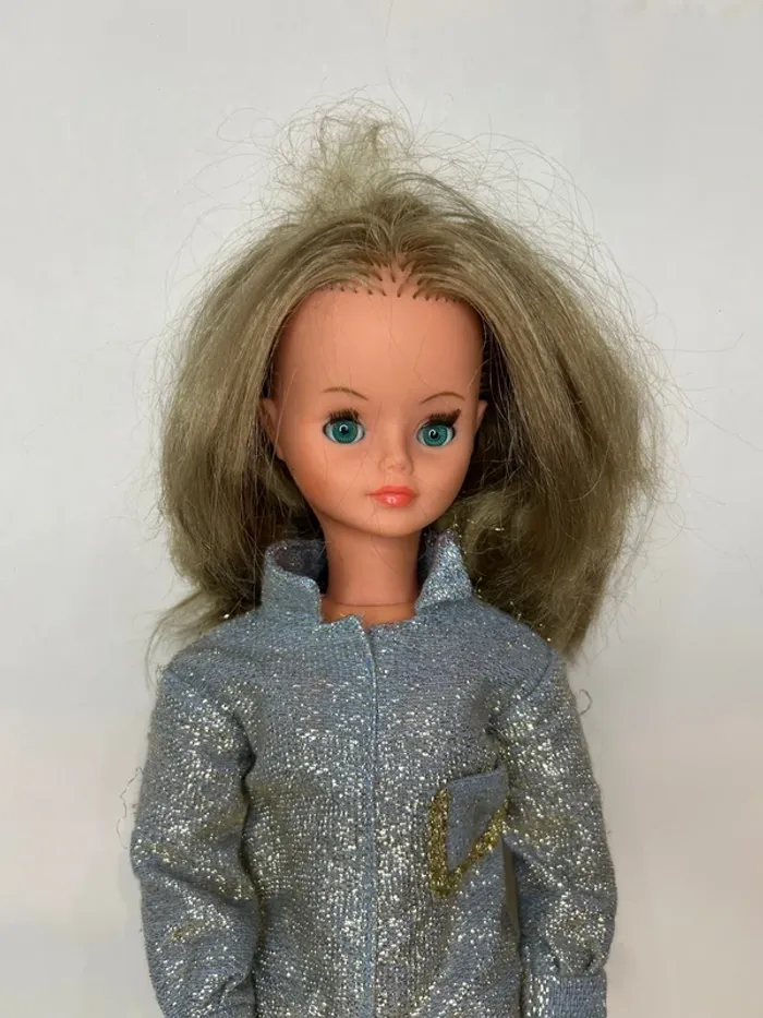 Poupée Cathie de Bella en très bon état. Le mécanisme de la mèche fonctionne parfaitement. Elle est vendue avec sa tenue d’origine complète ainsi que ses bottes assorties. Cheveux et maquillage en bel état, corps propre. Envoi rapide et soigné.