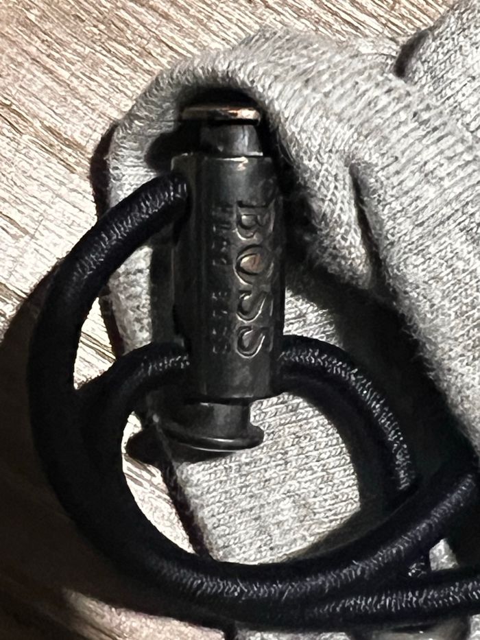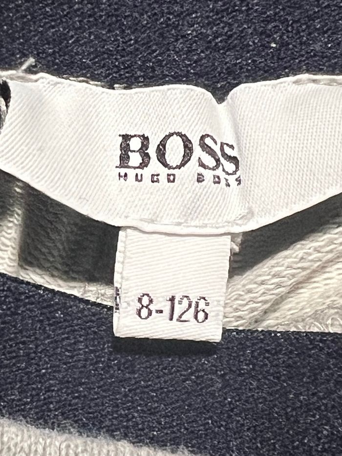 Produit comme neuf, en excellent état porté une fois Cordon à la taille et aux chevilles pour resserrer la ceinture a une bande bleue et il y a une poche de chaque côté avec le logo Hugo boss