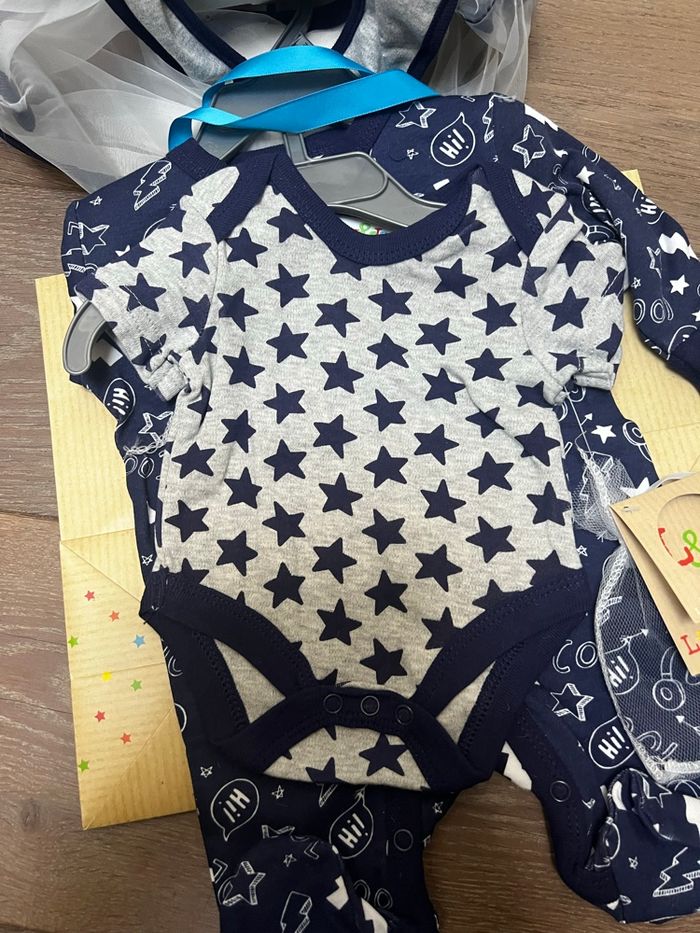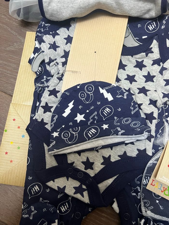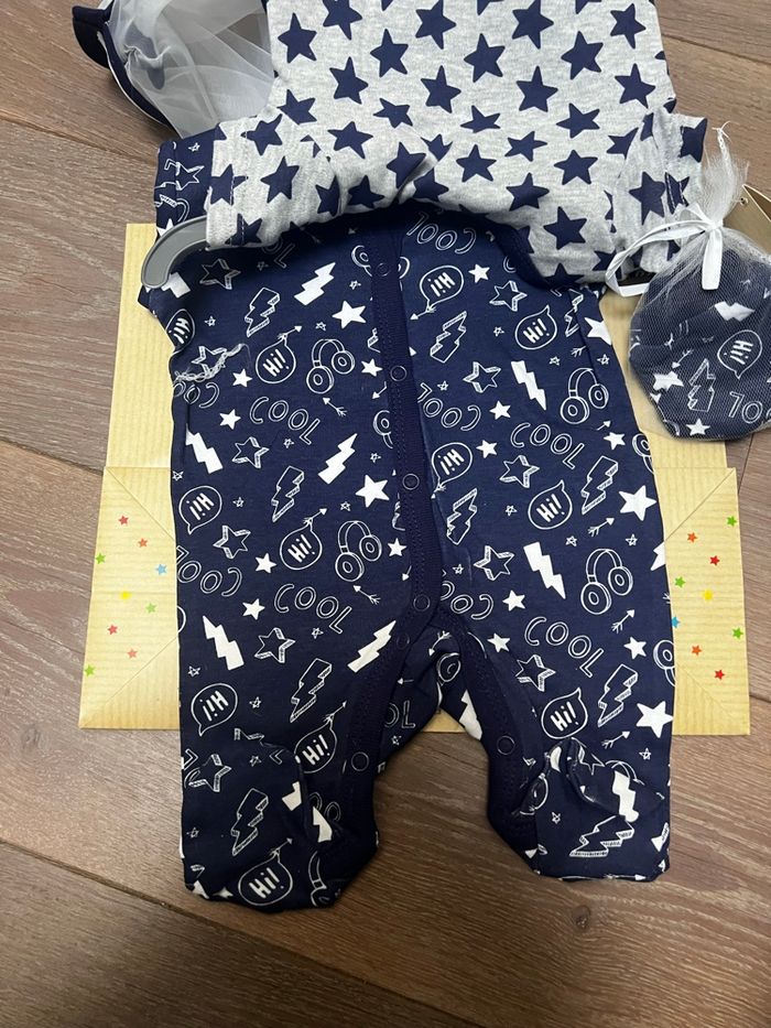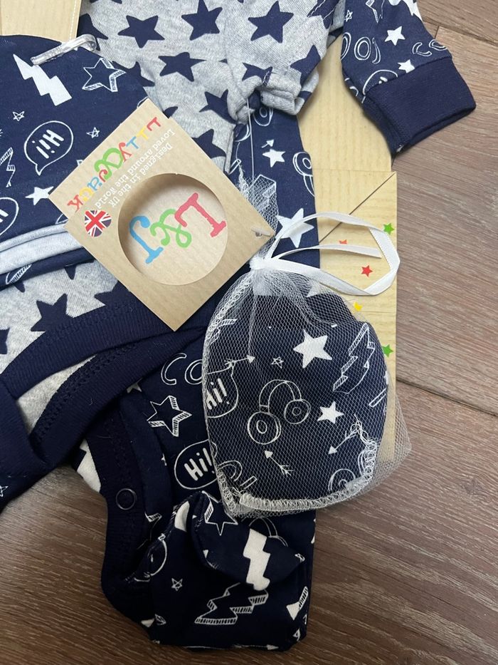 Accueillez votre nouveau-né avec style grâce à l'ensemble étoiles 5 pièces Lily & Jack, conçu pour les bébés de 0 à 3 mois. Cet adorable ensemble comprend un body, un pantalon, un bavoir, un bonnet et des moufles, tous ornés d'un charmant motif d'étoiles qui ajoutera une touche de magie à la garde-robe de votre tout-petit.