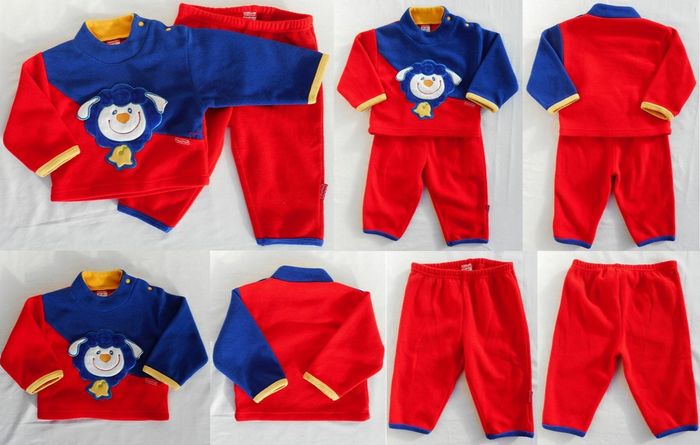 - survêtement polaire / pyjama d'intérieur chaud rouge et bleu "Fisher Price - Babywear" (élastique pantalon HS mais peut être remplacé)