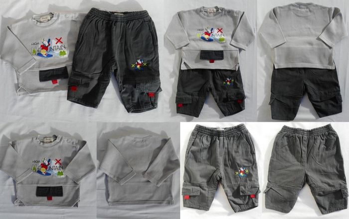 - ensemble pantalon + pull : pull / sweat gris clair "P'tites Canailles" + pantalon gris foncé entièrement doublé "P'tites Canailles"