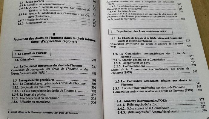 le droit international et la défense des droits de l'Homme (organisations et textes) 415 pages 4 ème de couverture défraichie voir photo 21x14cm