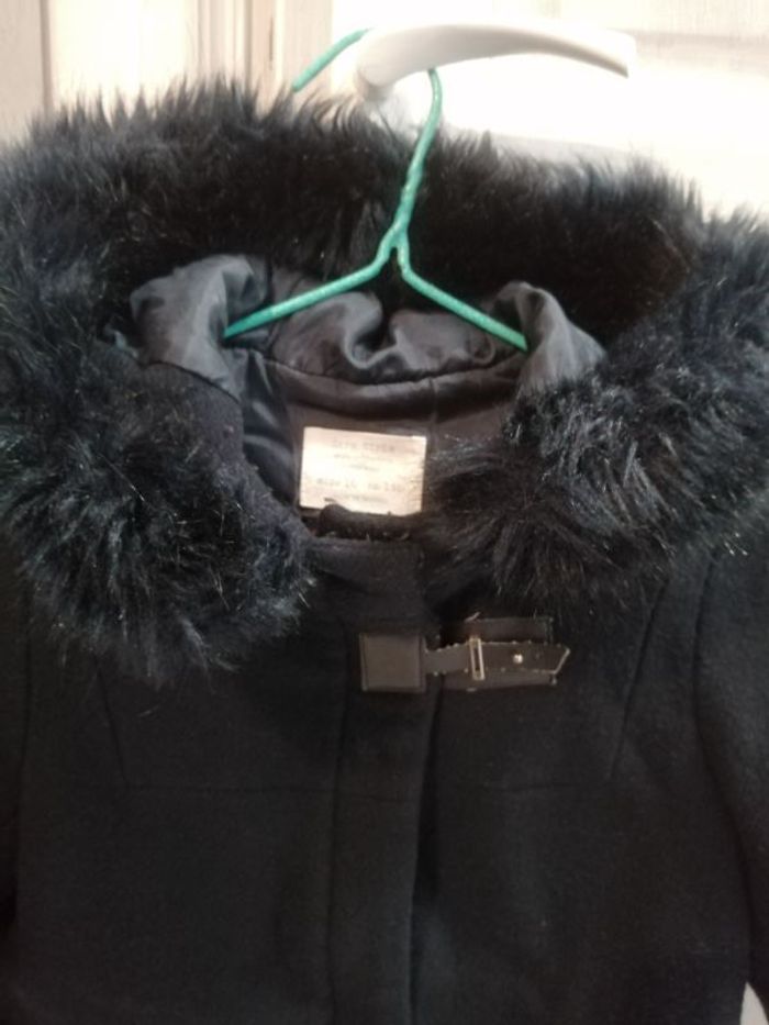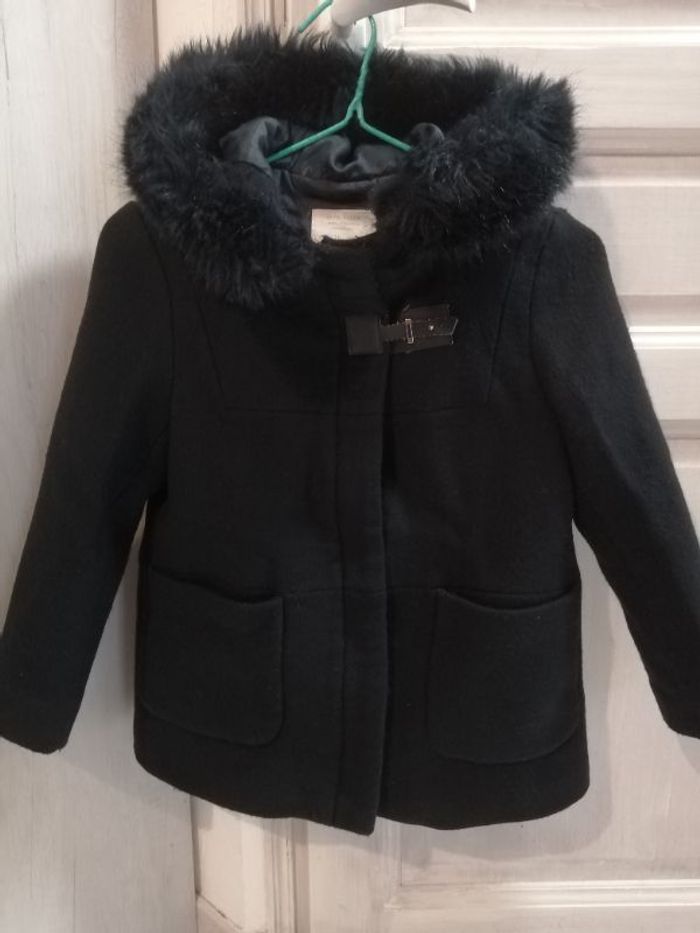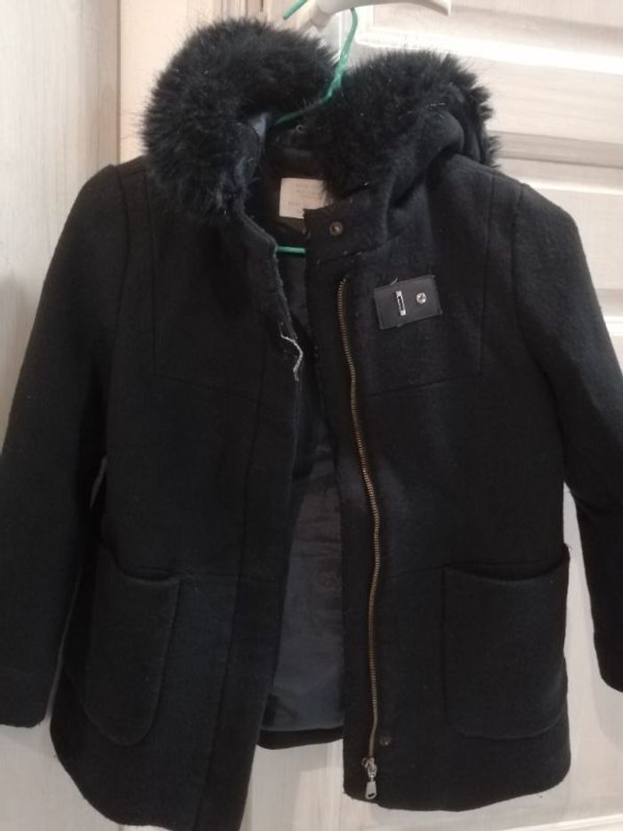 Manteau fille Zara Fourrure sur la capuche 2 poches sur le devant Fermeture éclair (qui est à réparer) et 2 boutons pressions La fermeture éclair est à refaire voir la dernière photo
