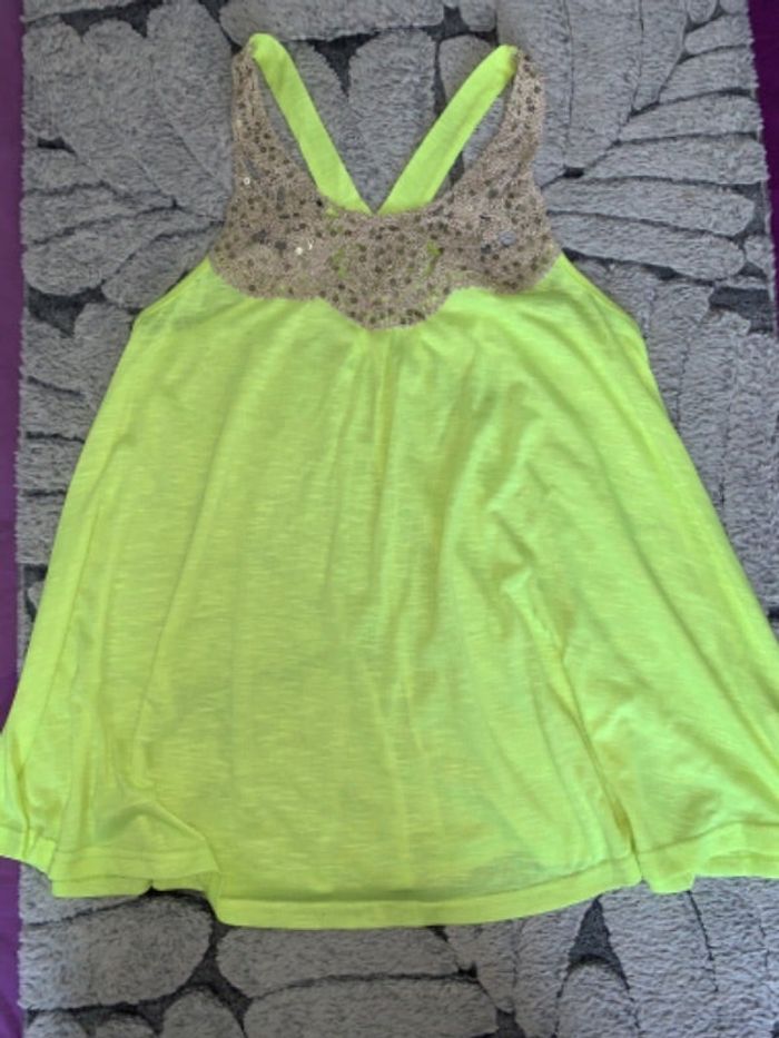 Taille unique jaune fluo très joli effet porté légères petites bouloches ne gêne en rien n’est pas spécialement flagrant