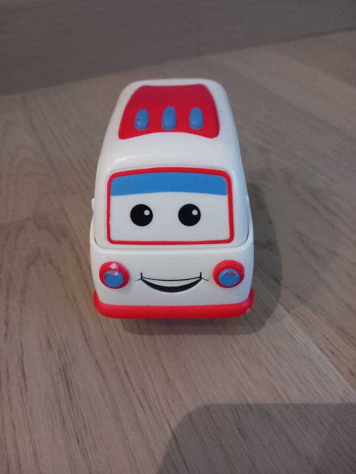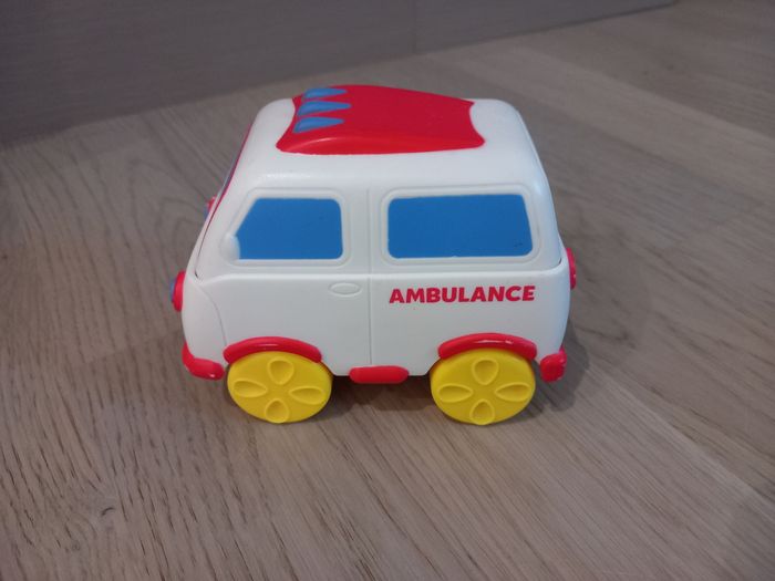 Petite voiture ambulance rigolote Avance quand on appuie dessus (parcours peu de distance) sans pile ni batterie