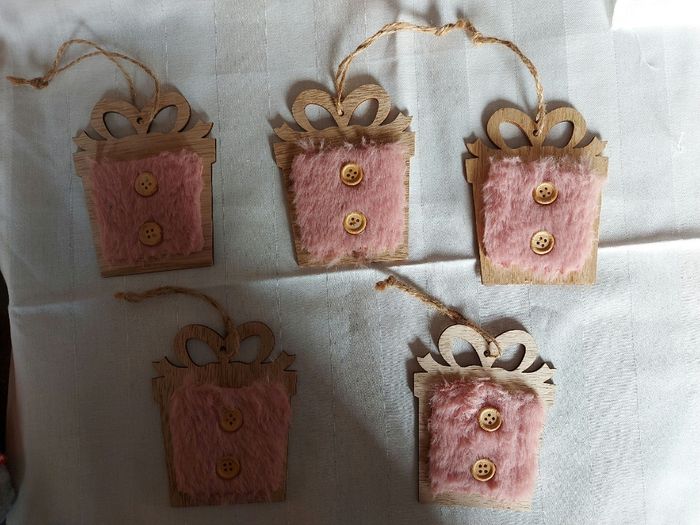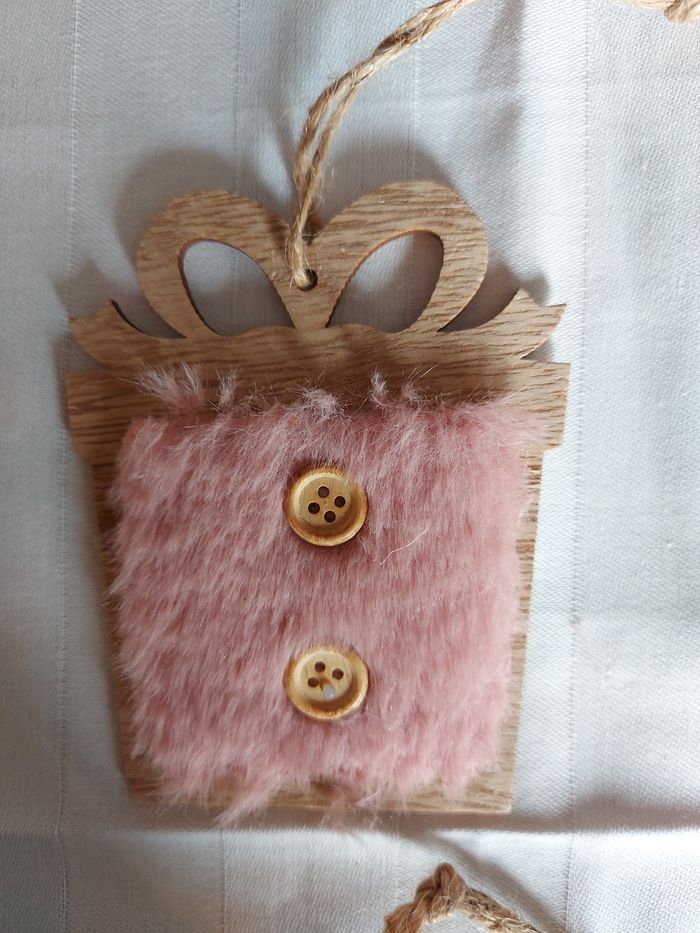 Lot 1/ suspensions pour le sapin, en bois et faux poils Ht 10 x l 8 cm Neuves