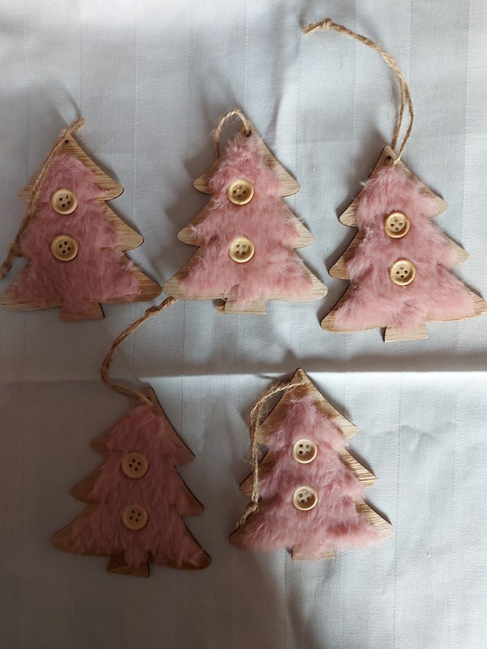 Lot 2/ suspensions pour le sapin, en bois et faux poils Ht 10 x l 8,5 cm Neuves