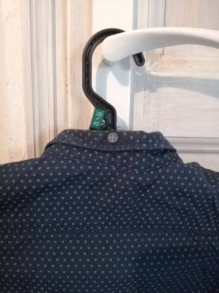 Chemise manche longue Marine avec des motifs blancs Un bouton sur le col à l arrière pour y attacher une cravate
