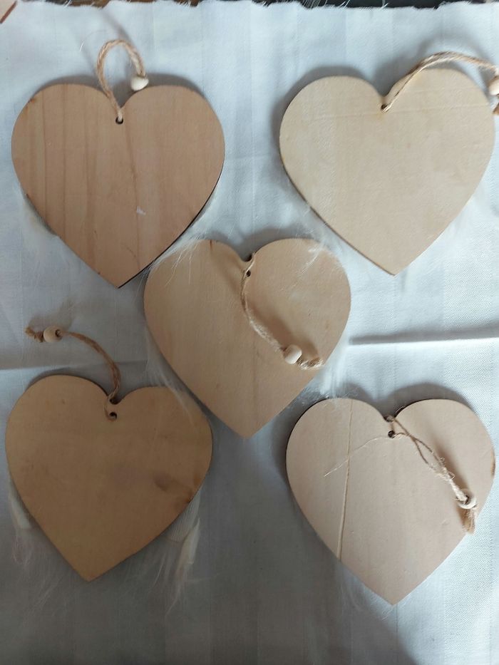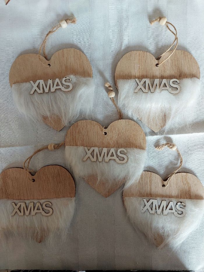 Lot 6/ suspensions pour le sapin, en bois Cœurs ht 12 x l 12 cm Neuves