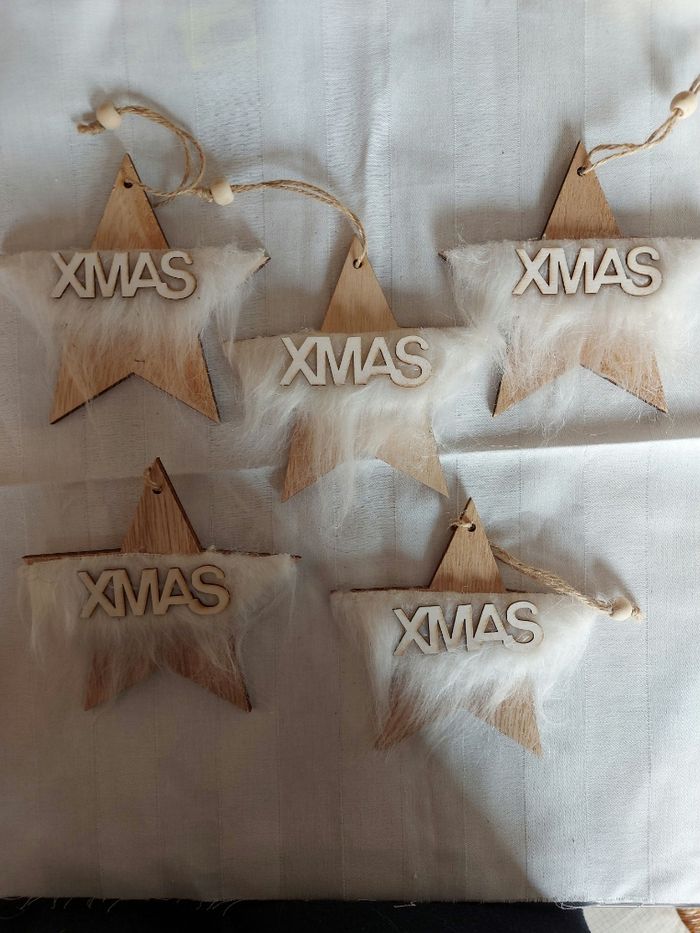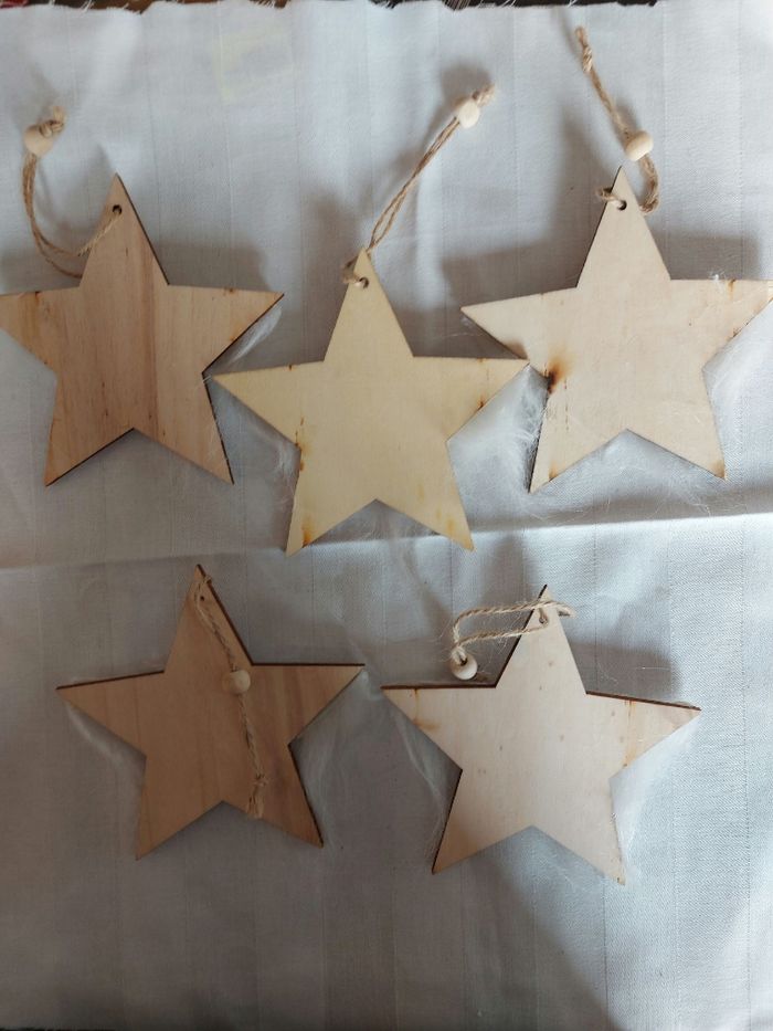Lot 7/ suspensions pour le sapin, en bois Etoiles ht 12 x l 12 cm Neuves