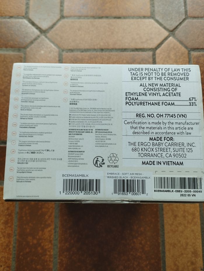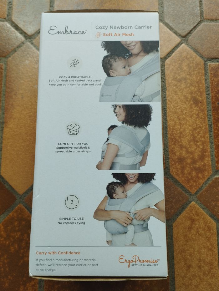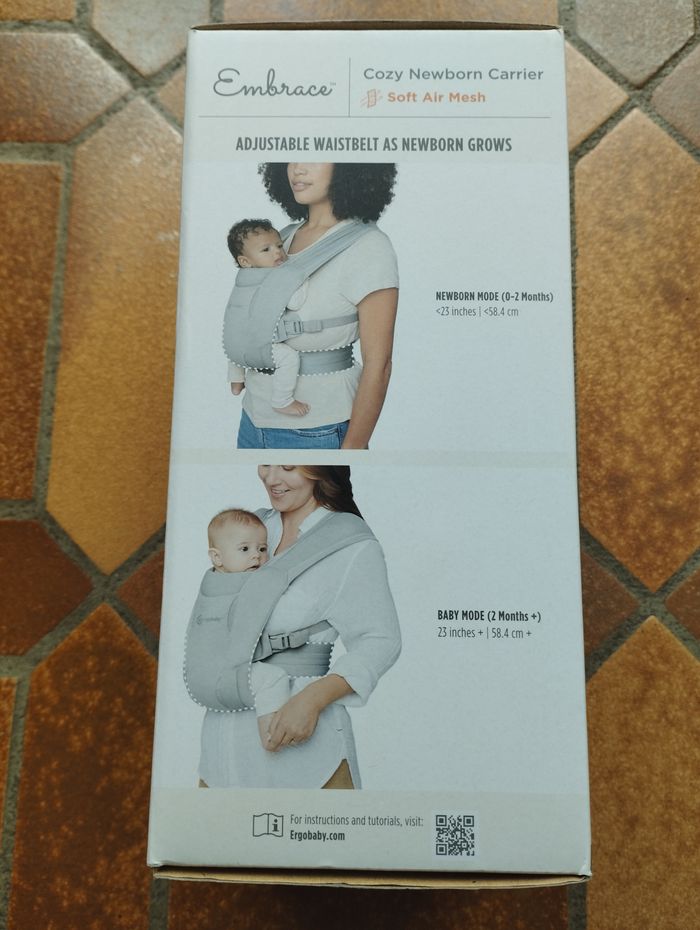 Porte bébé de la marque Ergobaby acheté à Vertbaudet. Pour nouveau né de 3,2 à 11,3 kg. Il est gris. Il est douillet et respirant. Il y a une ceinture ventrale de soutien et des bretelles entrecroisées extensibles pour plus de confort. La notice est à l'intérieur. Il est en très bon état.