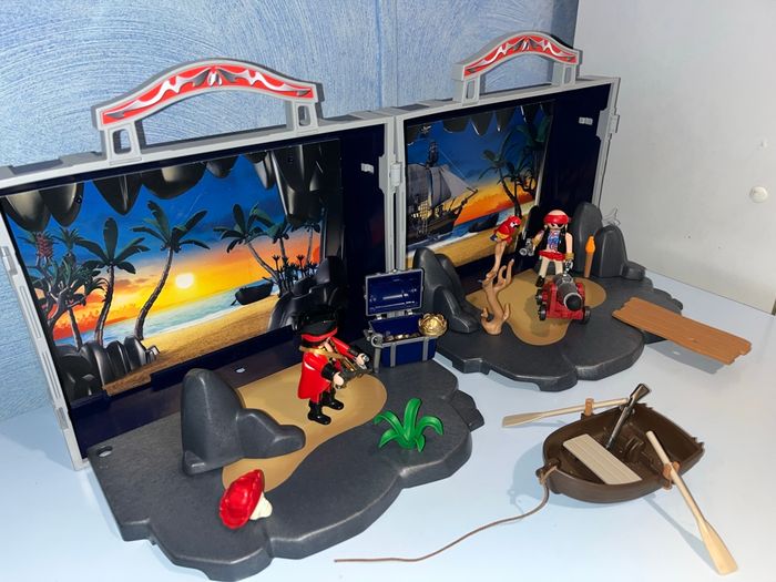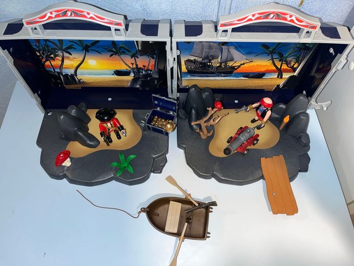 Coffre playmobil pirates 5947 comme neuf et pratiquement complet manque juste le palmier et la carafe Photos conforme à l article