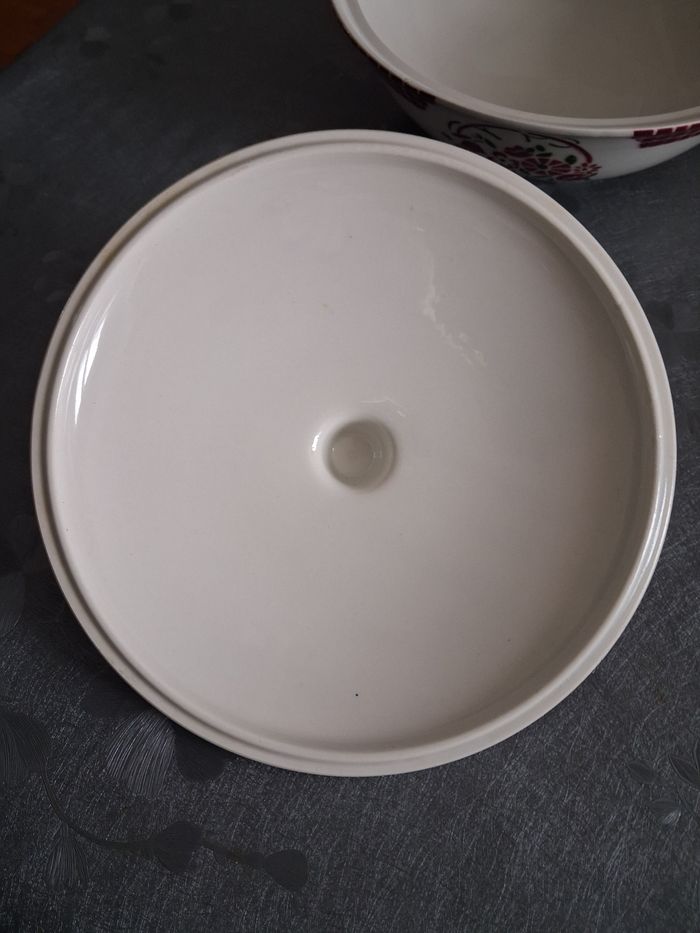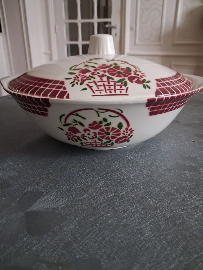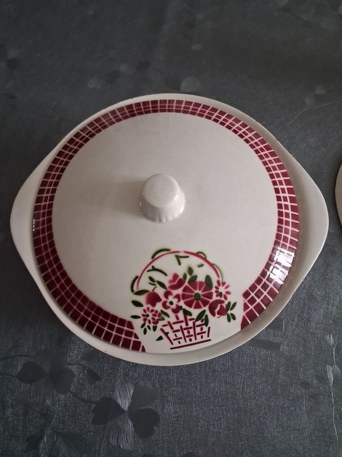 Soupière + plat vintage En faïence Service BADONVILLER Très très bon état juste légère égrenures peu visible ( voir photo)