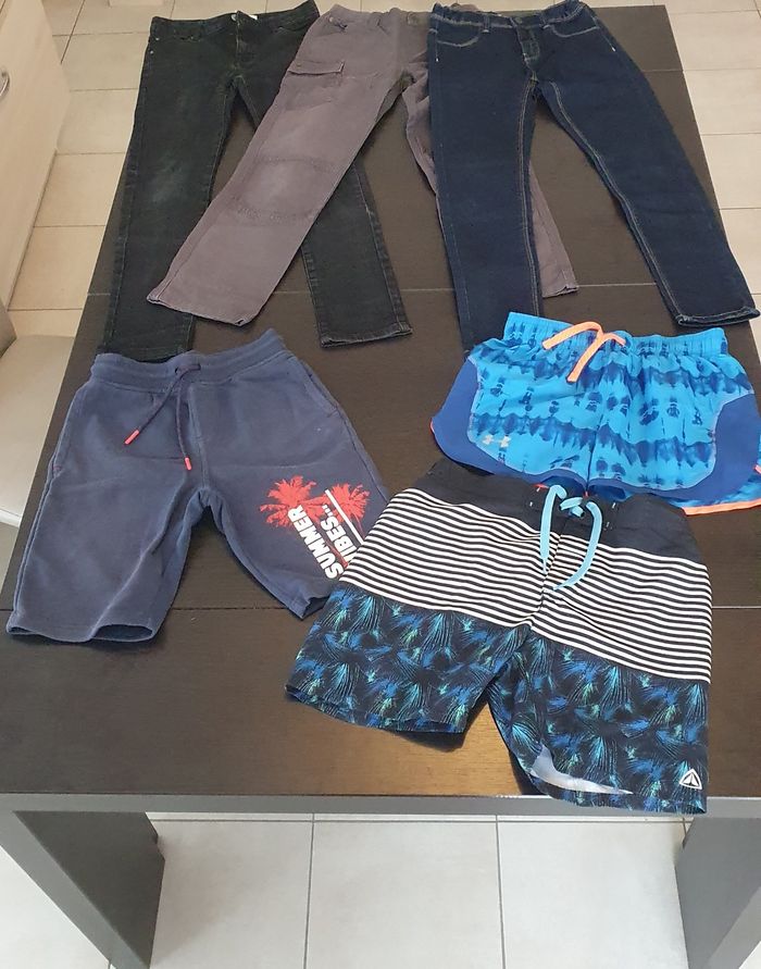 Je vends ce lot de 6 bas en 10 ans 3 pantalons 1 shirt de bain 2 shorts Under Armor, in extenso, firefly ...
