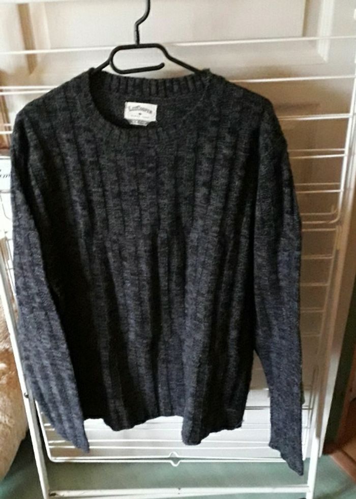 Pullover gris foncé chiné côtelé longueur 70 cm largeur épaule à épaule 49 cm