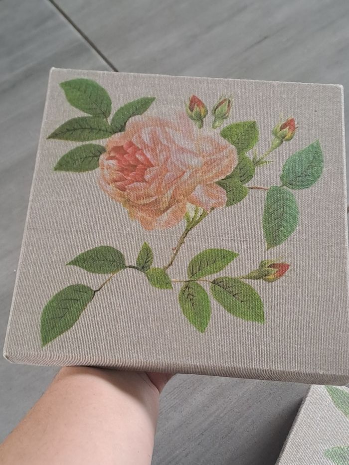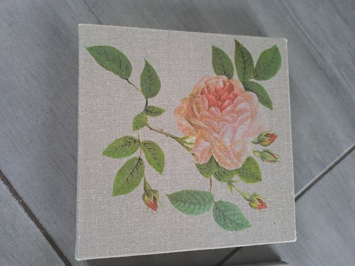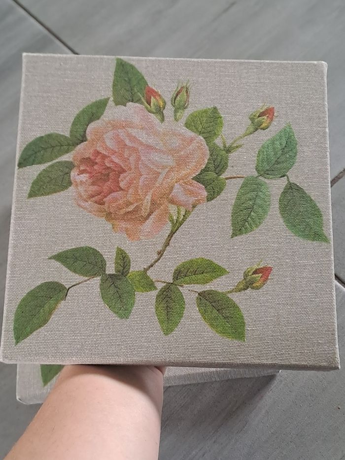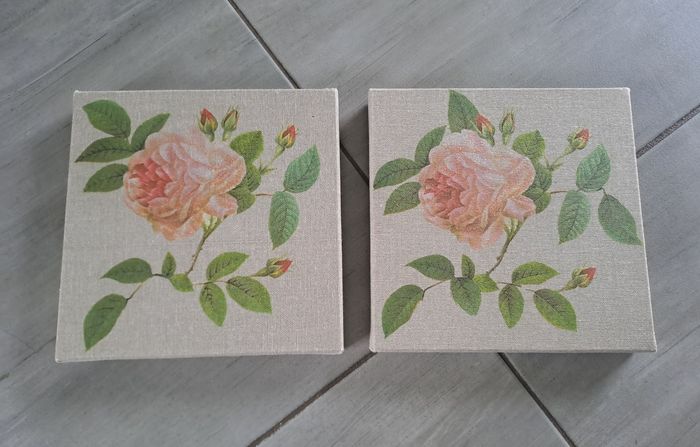 Lot de 2 petites toiles Taille 20×20 Couleur gris avec décor d'une rose sur chaque toile