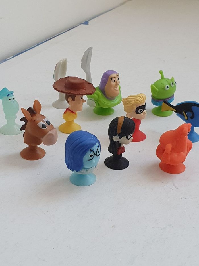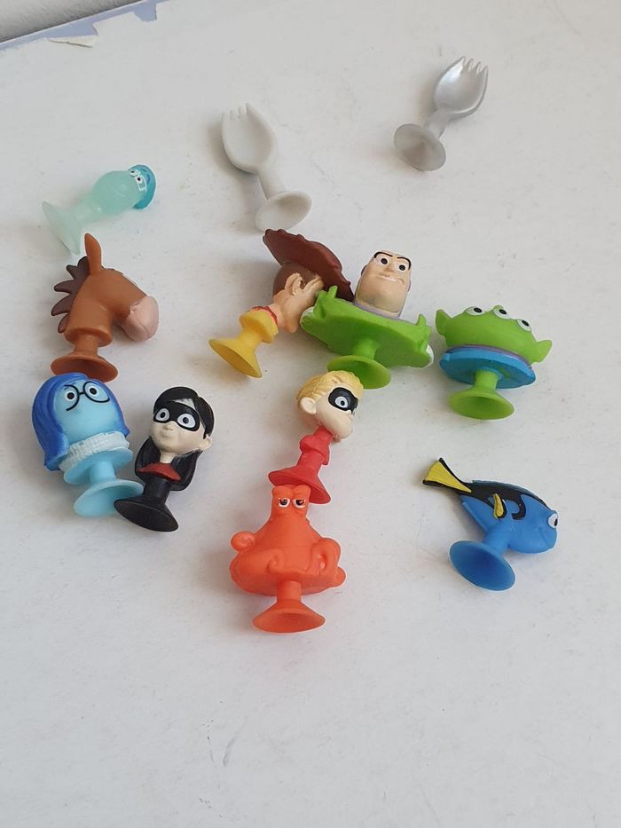 Comme sur les photos Vice-versa : Tristesse Les indestructibles 2 : Violette & Flèche Métallisés : fourchette Soul : Joe Toy Story : Pile-Poil, Fourchette, Aliens, Buzz l'éclair & Woody Le monde de Dory : Hank & Dory Faites votre choix à 0.50€/p, minimum 2 pour 1€. Lot de 4 à 1.90€ Sinon ce lot a 5€