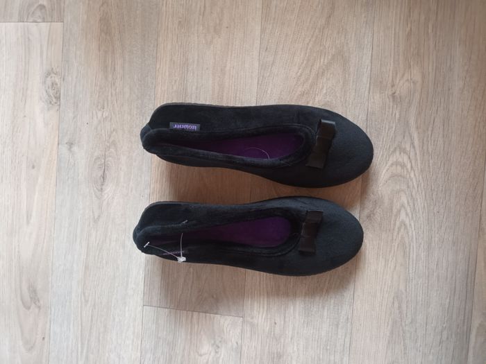chaussons pantoufles 37 isotoner neuf noir femme petit talon en velours