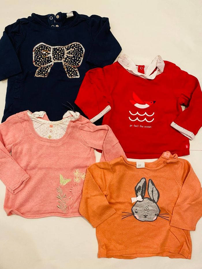 Lot de 4 pulls légers fille Taille 6 mois Marques : Orchestra/obaidi/cool club/h&m Très Bon état