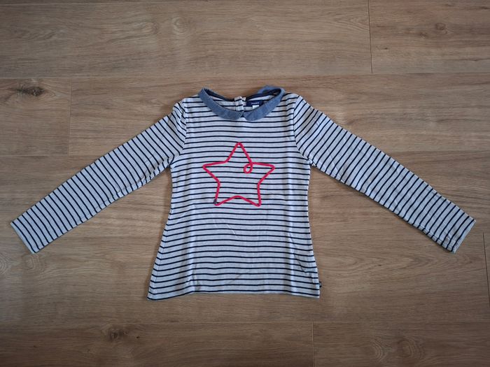 T shirt/ blouse gris/bleu rayé Okaïdi 12 ans