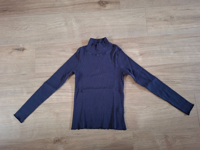 T shirt/sous-pull col cheminée manches longues bleu marine TAO 12 ans