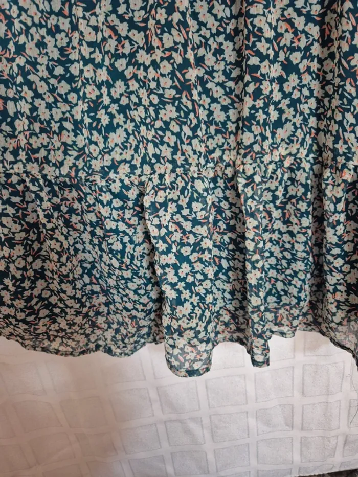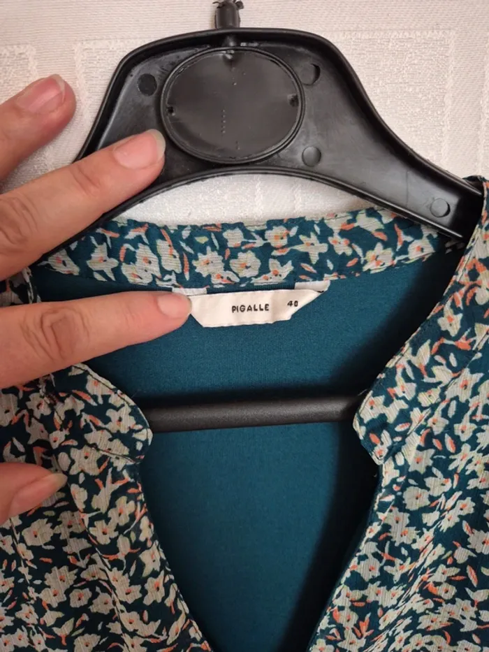 ⬇️mes autres annonces pour femme en taille 40 👉 #cg89femme40 une robe manche longue, elles est en voile imprimé fleurs, mais elle est doublée donc non transparente. Elle est moderne avec ses volants, attention toutefois elle a quelques fils "tirés". Elle mesure 52 cm aux aisselles et 86 cm longueur. bon état - taille 40 - marque pigalle #robe #voile #fleur #volant