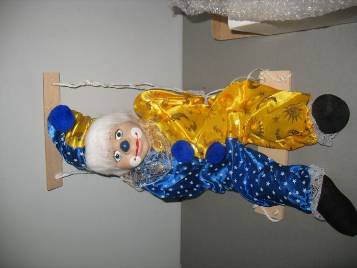 #Collections_Nathg2210 CLOWN EN PORCELAINE SUR BALANÇOIRE - NEUF - Réf.136.108 - n°08 Clown en porcelaine jaune et bleu - Sur sa balançoire. Article neuf - Dans sa boite d'origine - Sorti de son emballage pour les photos. Possibilité d'envoyer d'autres photos sur simple demande. Maison non-fumeur - Sans animaux. Réduction lot activée. Allez voir mes autres ventes, je vide les placards. Beaucoup de vêtements de marque et beaucoup de jouets. Remise en mains propres ou possibilité d'envoi au tarif en vigueur à votre charge. Retour Refusé. Pour tout renseignement, n'hésitez pas à me contacter, je répondrai volontiers à vos questions. Réponse Assurée. Pour Consulter mes autres annonces tapez Nathg2210.