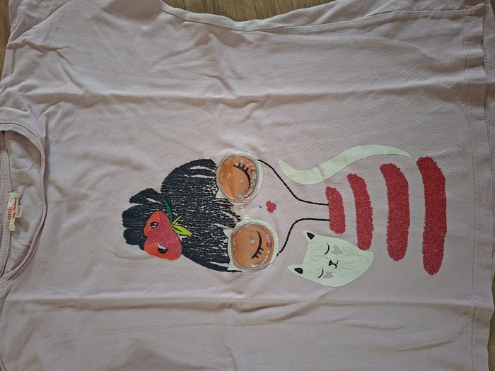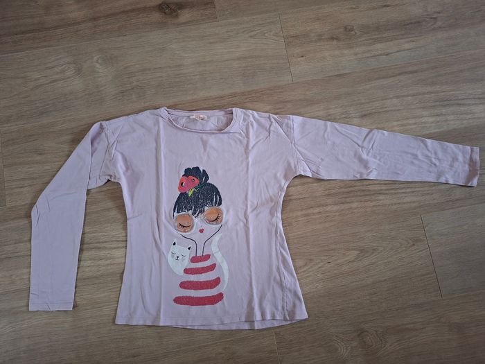 T-shirt rose manches longues imprimé fille et son chat DPAM 12 ans