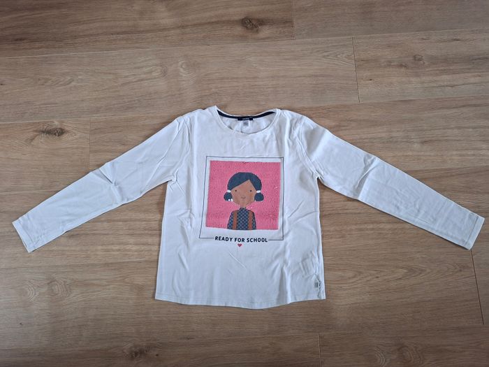 T shirt manches longues blanc/rose "ready for school"Okaïdi 12 ans