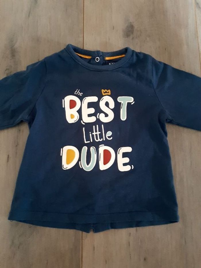 Tee-shirt bleu manches longues taille 9 mois en très bon état.