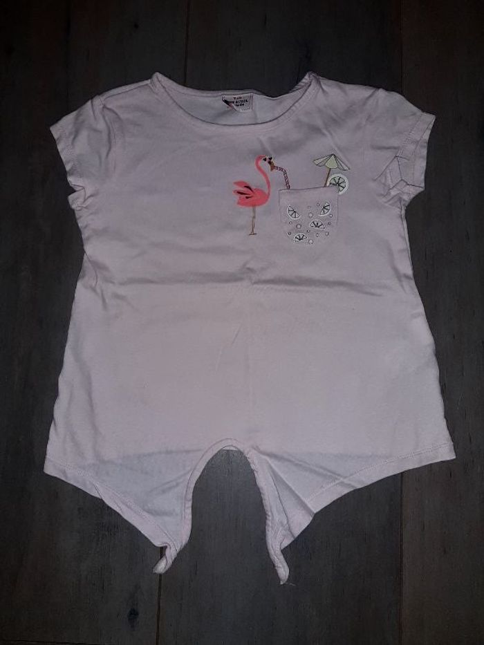 Tee-shirt manches courtes rose clair taille 36 mois.