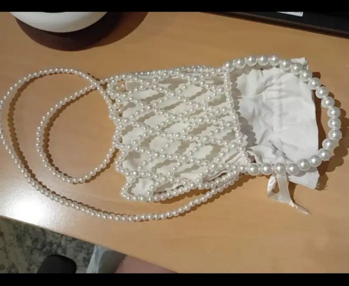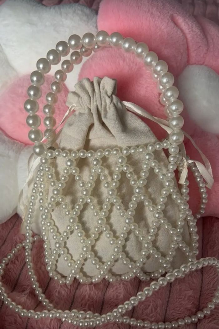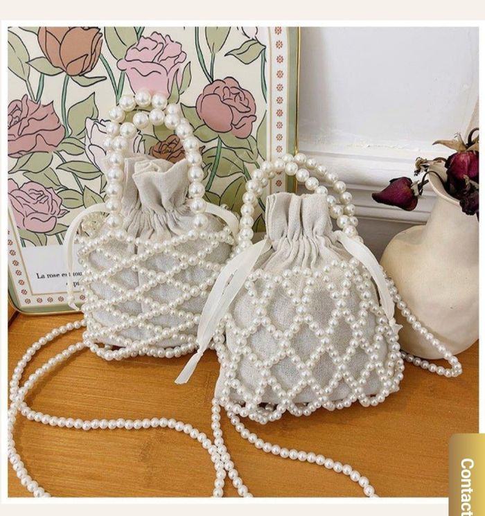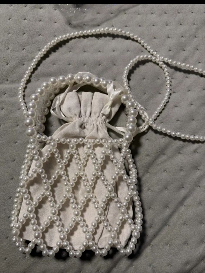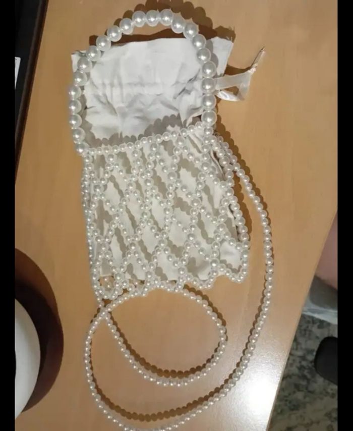 Sac soirée perle blanc cassé élégant mariage baptême