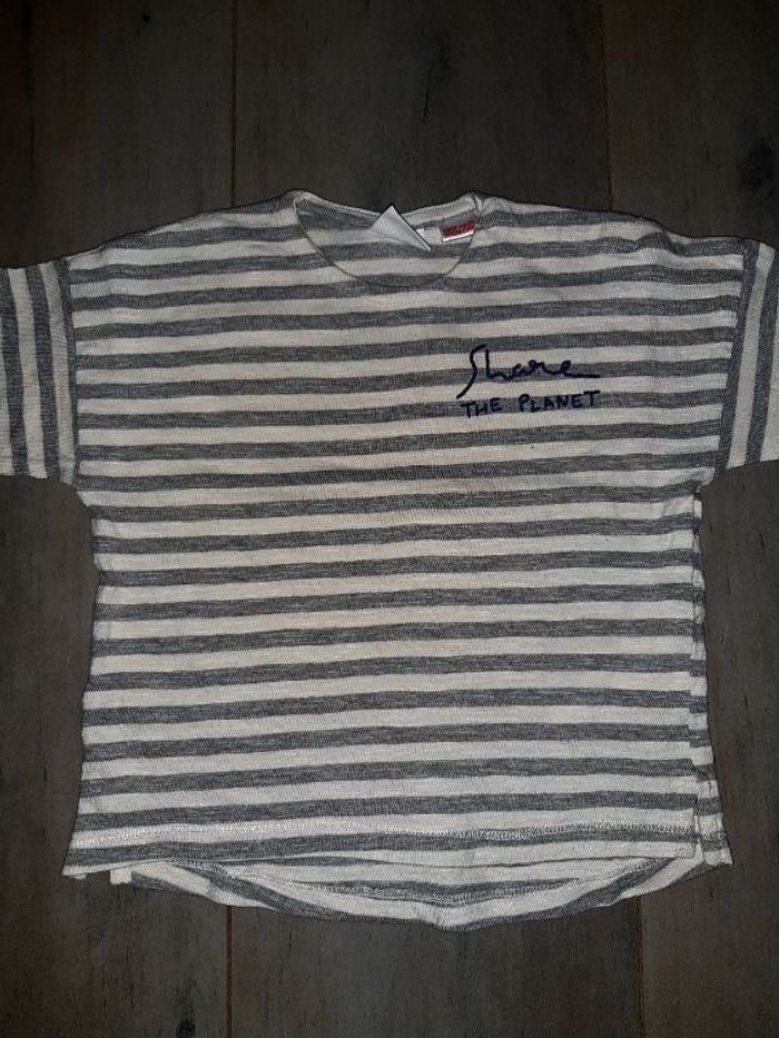 Tee-shirt manches longues rayé gris et blanc taille 18mois neuf jamais porté