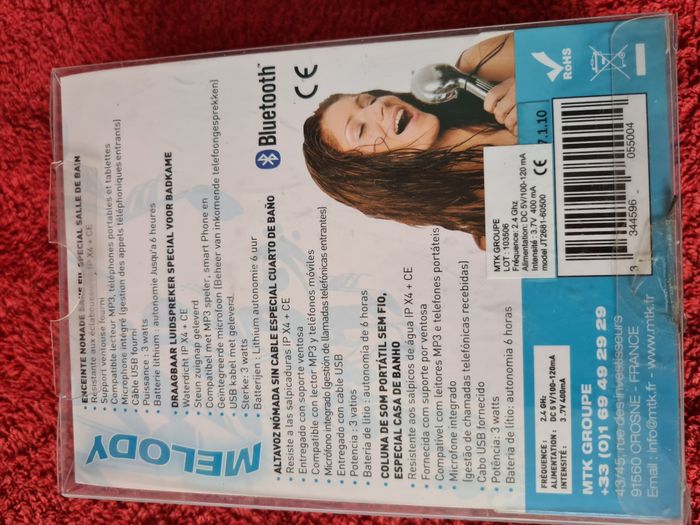 Bonjour Vend en neuf jamais ouvert Enceinte nomade sans fil Spécial salle de bain voir ma photo