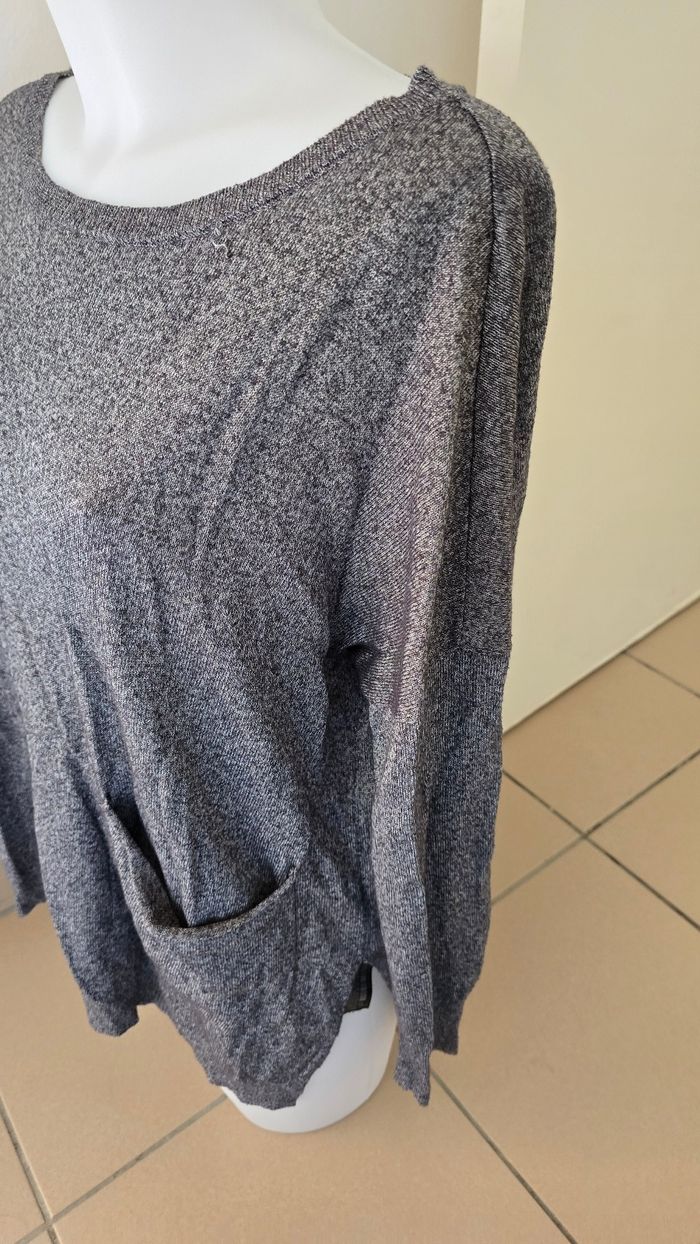 Pull fin zara Noir et argenté Col rond Fendue sur les côtés Poches devant #pull #zara #pullzara #ameliedressing13taillem