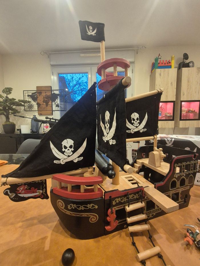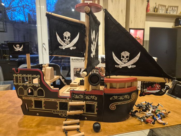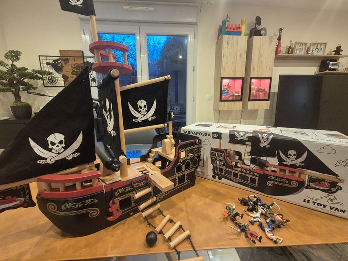 Bateau Pirates Barberousse le Toy Van En bonne état manque juste un petit escalier ainsi qu’une boule de canon Prix neuf 79,90 € Je rajoute quelque figurine en plus Idéal pour Noël