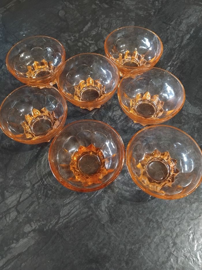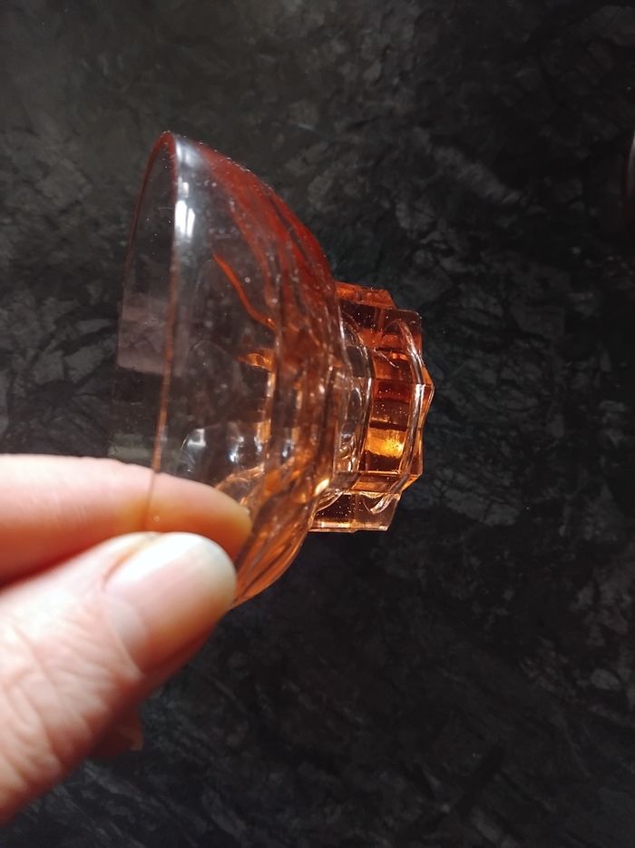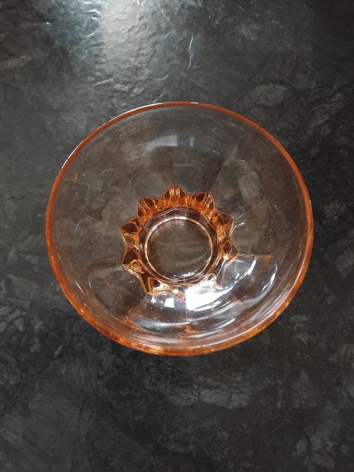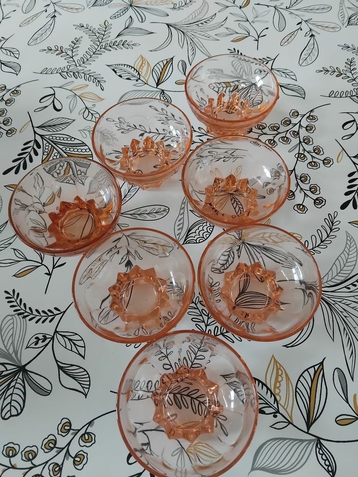 Lot de 7 coupes à champagne, apéro, liqueur... Verres moulés teinté rose. Vintage des années 50. Dimension 8,5 cm sur 4,5 cm. Made in France. #décorationnade3033 #accessoiremaisonnade3033 #bazarnade3033 #vaisellenade3033