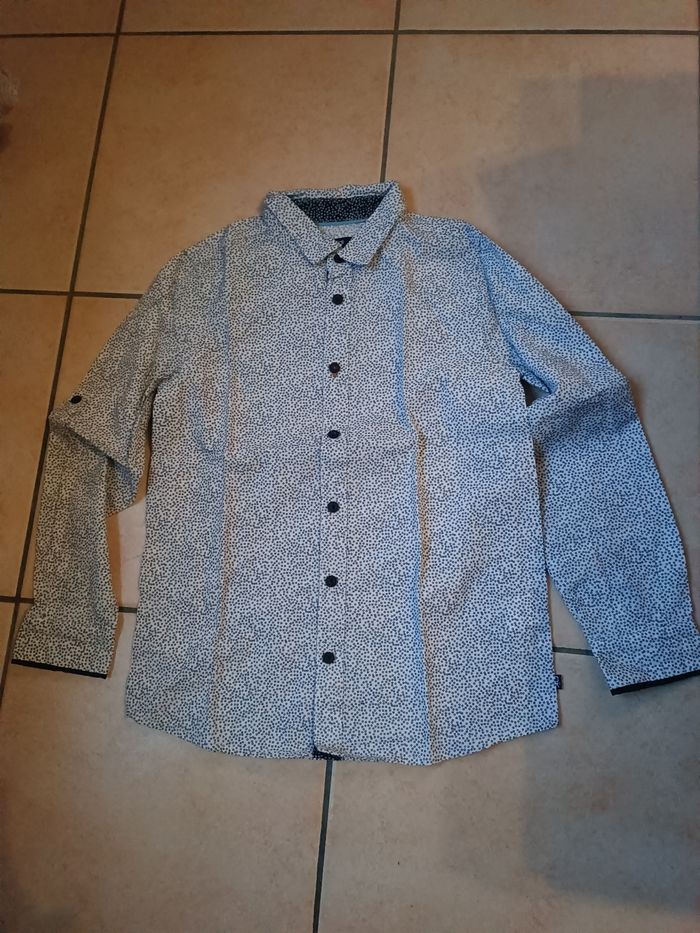 Chemise blanche à pois bleus Okaïdi 8 ans
