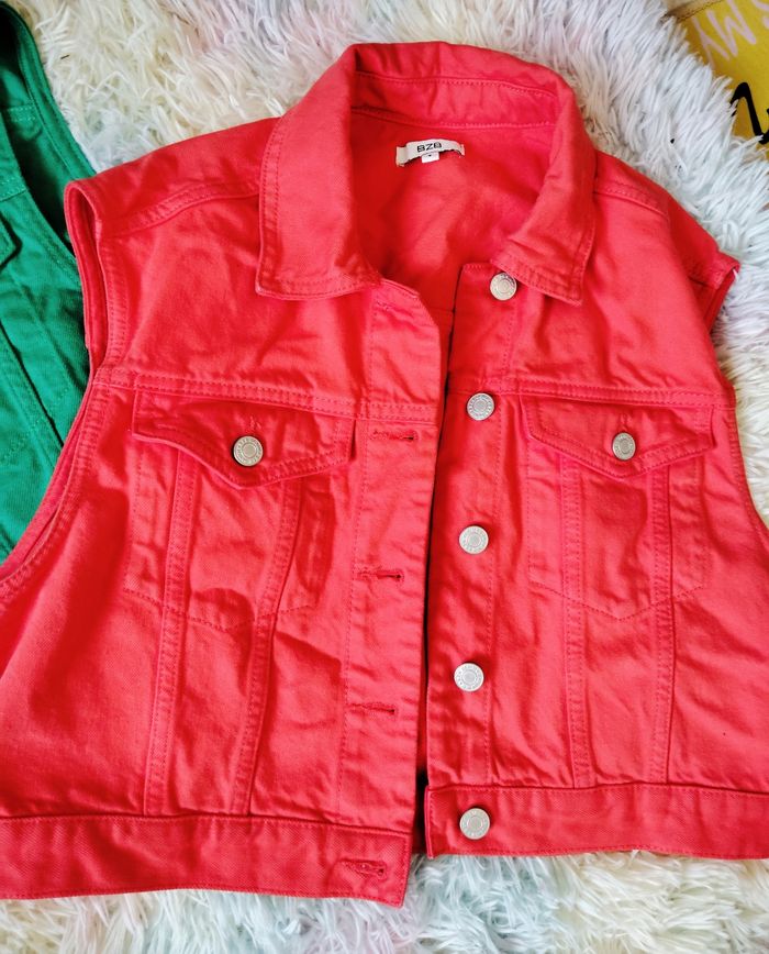 Lot 2 vestes courtes jeans beezbee vert rouge orangé S - photo numéro 6
