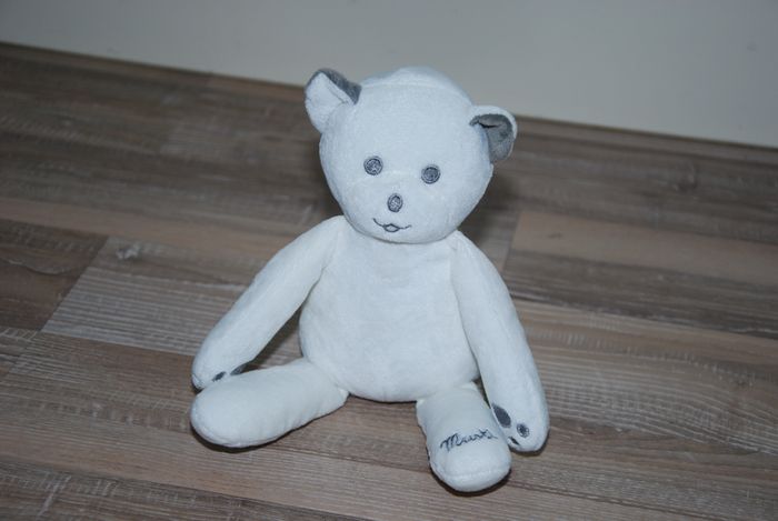 Doudou Peluche ours blanc pattes grises Musti de Mustela 24 cm