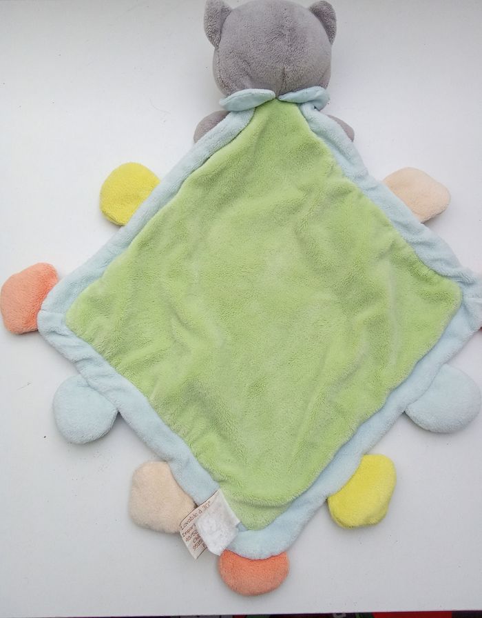 Doudou mouchoir, garçon baby nat' ours vert, bleu ciel, orange, jaune super doudou - photo numéro 2