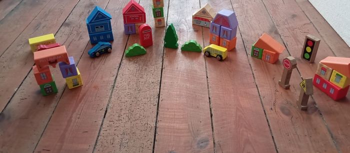 Jeu de construction de ville avec cubes en bois