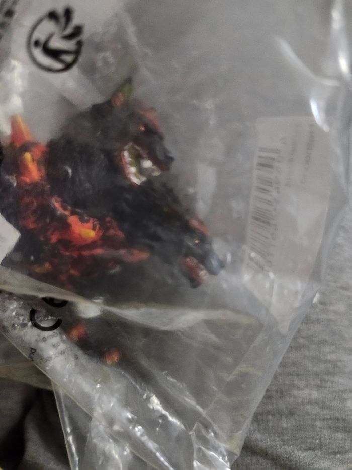 Neuf . N’hesitez pas a faire des lots. Attention, extrêmement méchant : quiconque veut entrer dans le monde de lave doit passer près du cerbère. Et ce n'est pas si simple. Il peut non seulement aboyer de façon assourdissante et grogner, mais il possède aussi deux têtes avec lesquelles il peut tenir en échec deux ennemis à la fois ! S'il remue la queue, les intrus seraient bien inspirés de prendre rapidement la fuite car il l'utilise dans le combat comme un fouet de feu brûlant ! Une armure de magma ultra-brûlant lui confère également une protection suffisante. Pas étonnant que ce cerbère n'ait peur de rien ni personne ! Quoique, une chose trouble malgré tout son sommeil : la peur que la coulée de lave éternelle puisse un jour se tarir.