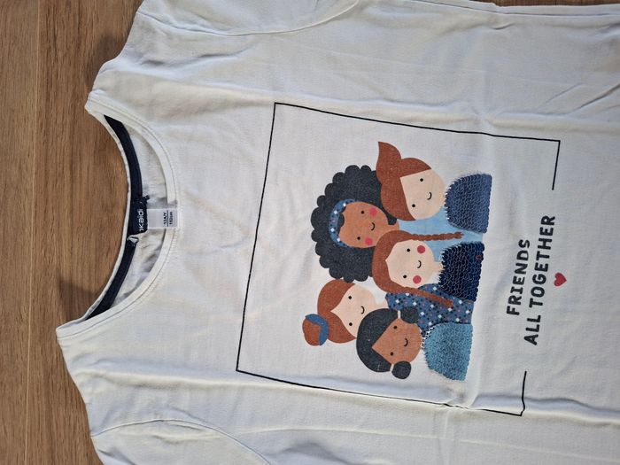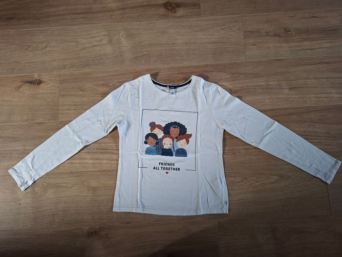 T-shirt manches longues blanc imprimé sequins bleu "friends" Okaïdi 12 ans